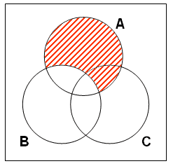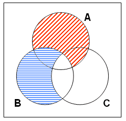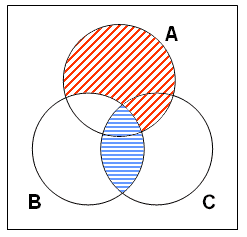 步驟一: 畫三個相互交疊的圓圈代表例一提及的三個集合(以‘A’代表男人集,‘B’代表好學者集,及以‘C’代表早死的東西集。) 。如下圖: